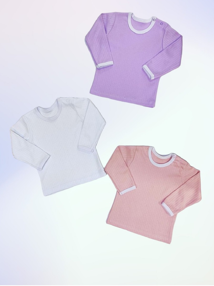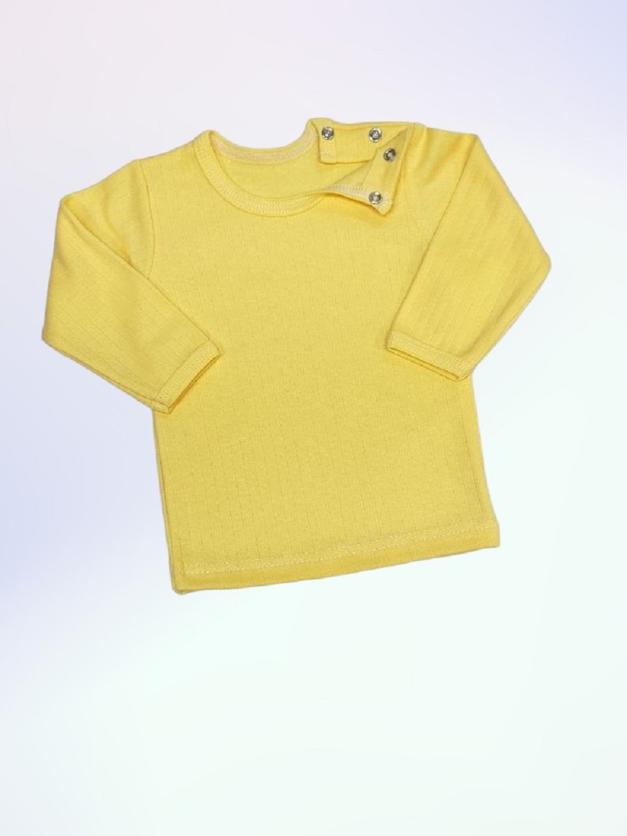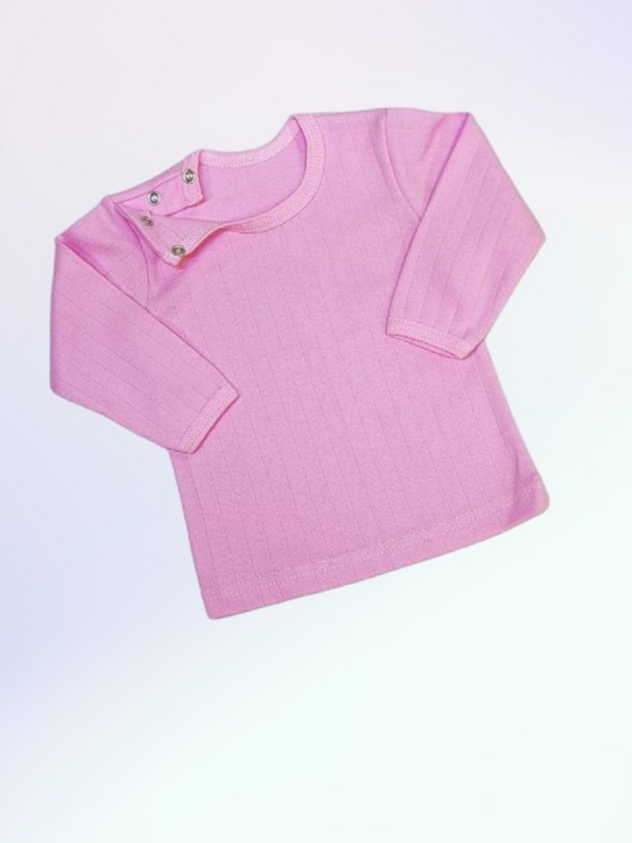 Кофточка однотонная с длинным рукавом, с двумя кнопочками на одном плече.