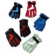 В упаковке 12 пар одного размера, разного цвета. Перчатки на запястье помимо резинки с одной стороны регулируются ремешком на липучке. Изнутри на запястье вязаная манжета. Внутри перчатки с начёсом. Верх - непромокаемая плащёвка. Рисунок у перчаток в каждой партии может отличаться.